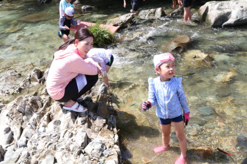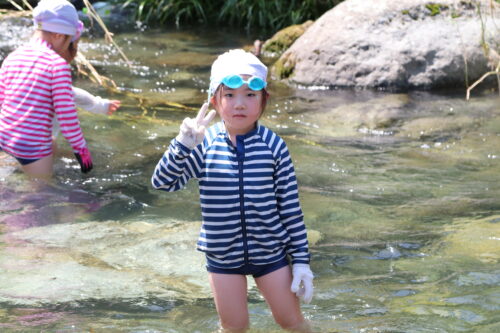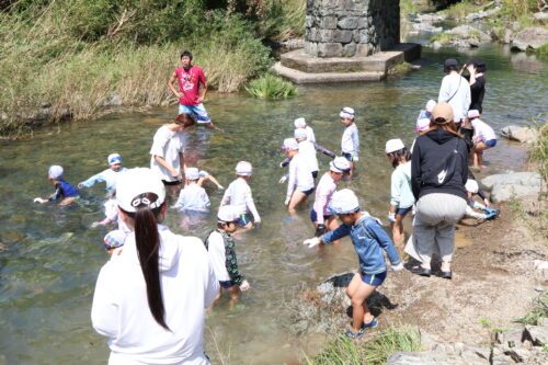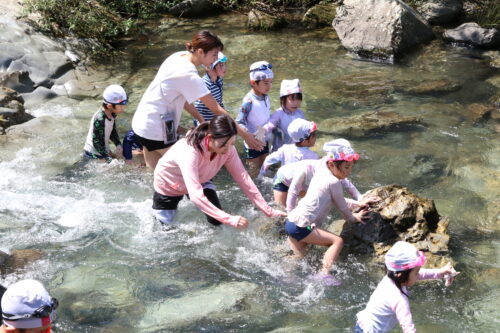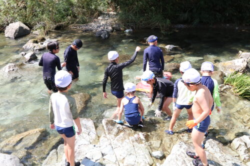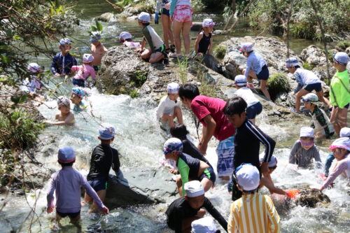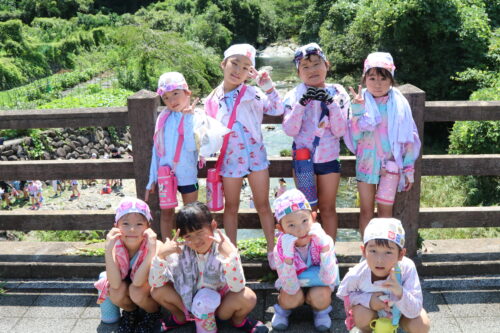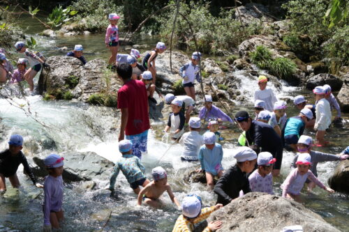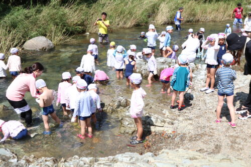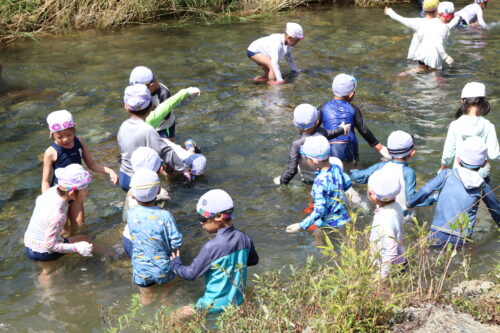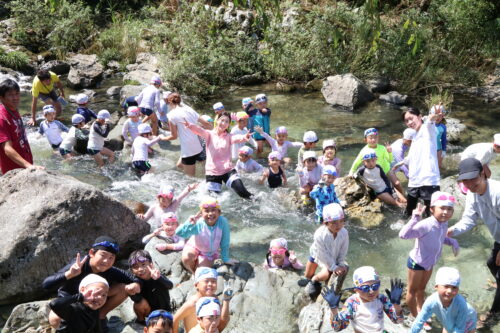 本日、年長組さんは今夏最後の川遊びに行きました。