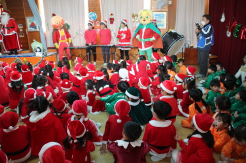(アンパンマンとメロンパンナちゃんもサンタ姿で登場)